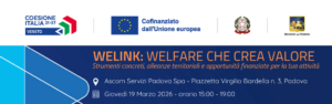 Ascom Servizi Padova, in qualitĂ di Partner Operativo, prende parte all’evento organizzato nell’ambito del progetto “WeLink: la rete che genera valore comune”, presentato a valere sulla D.G.R. n. 1102 del 15/09/2025 – “WELL-FARE – Il welfare che connette. Reti territoriali per il welfare aziendale”.
